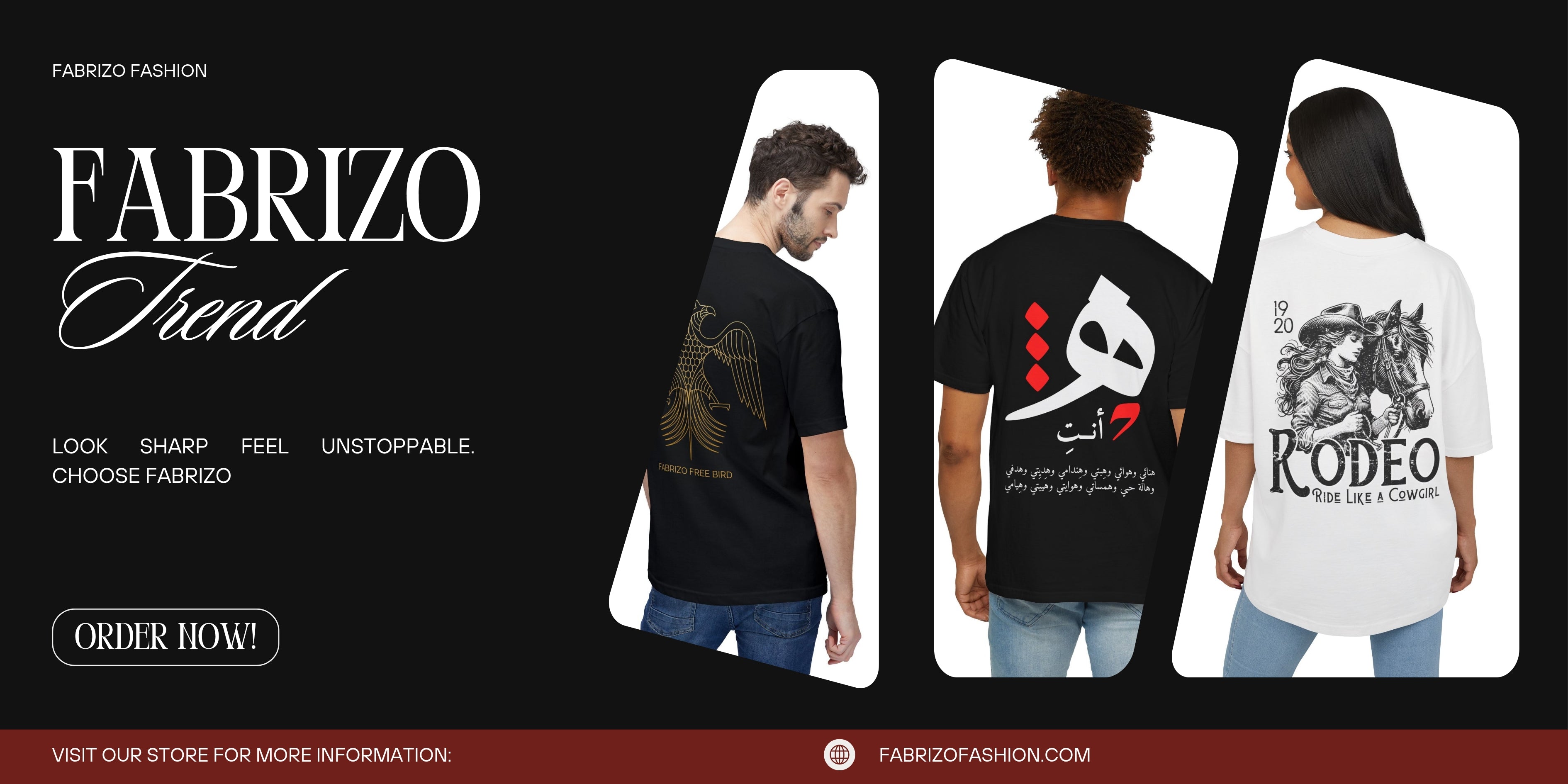 Fabrizo Fashion offers trendy, high-quality T-shirts with customizable print-on-demand designs. Express your unique style with personalized prints for every occasion
